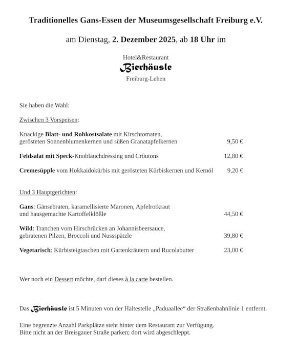 Anmeldung zum Traditionellen Gans-/Wildessen